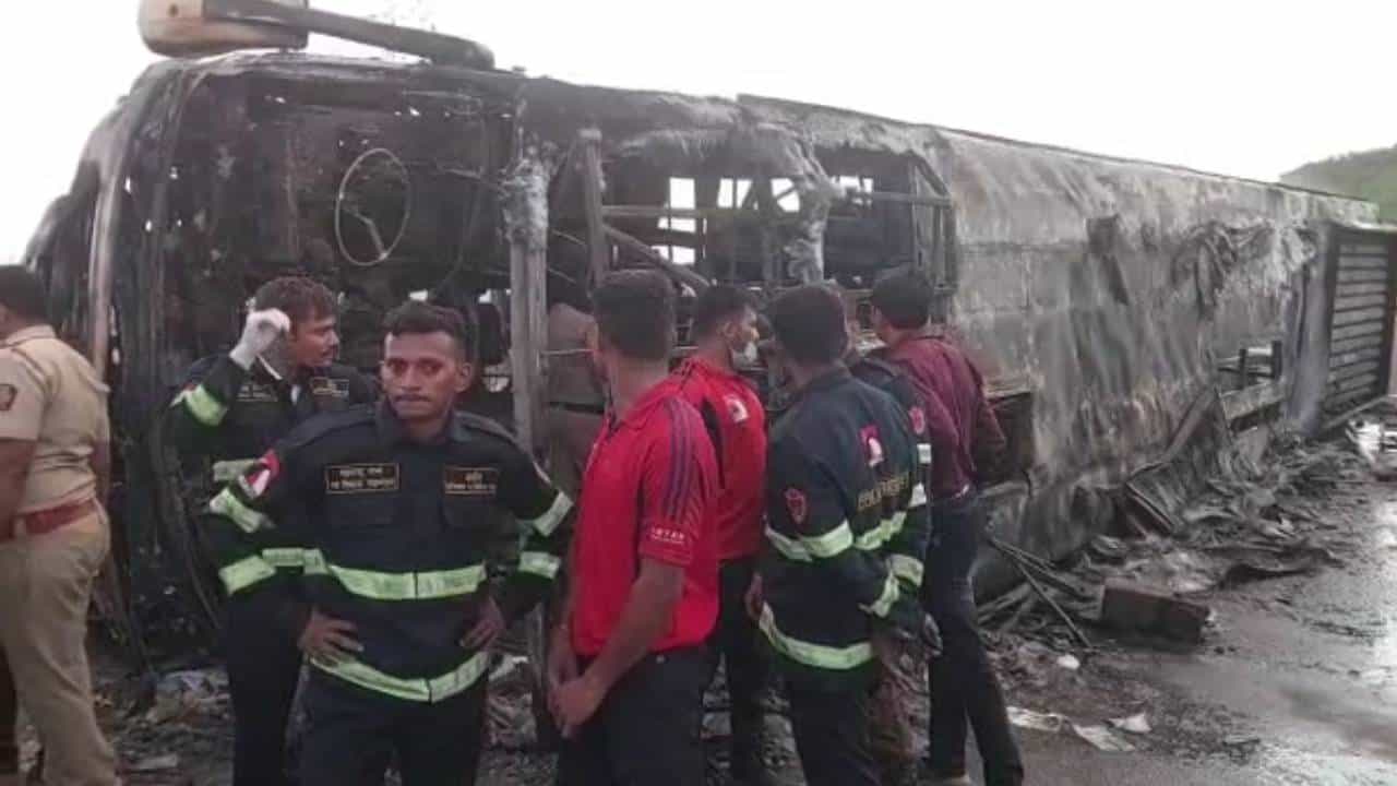 बुलढाणा : बुलढाण्यात मध्यरात्री विदर्भ ट्रॅव्हलच्या बसला अपघात होऊन ती पेटल्याने 25 जणांचा जागीच होरपळून मृ्त्यू झाला. या बसचा टायर फुटल्याने अपघात झाल्याचे आधी म्हटले जात होते. परंतू प्राथमिक तपासात टायर फुटून अपघात झाला नसल्याचे उघडकीस आले आहे. या बसवर नियमाचे उल्लंघन केल्या प्रकरणात दंडात्मक कारवाई झाल्याचेही उघडकीस आले आहे. दरम्यान या अपघातातील बळींची नावे जाहीर करण्यात आली आहे. बस अपघाताचे वृत्त समजताच मुख्यमंत्री एकनाथ शिंदे यांनी सर्व कार्यक्रम रद्द करीत घटनास्थळ गाठले आहे.