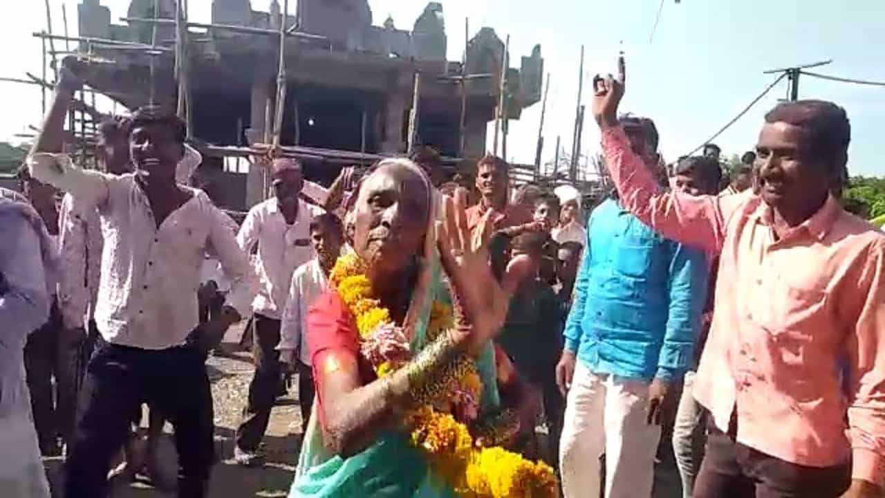 या जल्लोषात 70 वर्षीय आजी रुक्मिणीबाई ढोणे या देखील सहभागी झाल्या. त्यांनी गळ्यात पुष्पहार घालून ढोल-ताशांच्या तालावर भन्नाट डान्स केला. त्यांचा डान्सचा व्हिडीओ सध्या सोशल मीडियावर अनेकांचं लक्ष वेधत आहे.