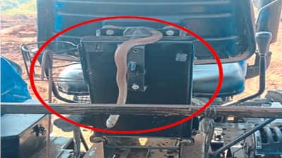 नाशिक जिल्ह्यातील देवळा तालुक्यातील शेतकरी विलास यांच्या शेतात सकाळी सपाटीकरण सुरू होते, त्यातचट्रॅक्टर चालकाच्या शिटाखाली साप निघाला आहे.