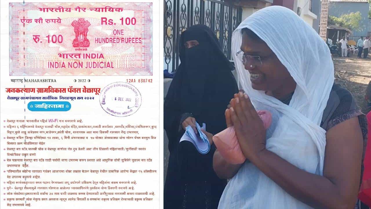 त्यातच त्या अशिक्षित आहे, पण गावचा विकास करायची त्यांची इच्छा आहे, त्याकरिता त्यांनी जाहीरनामा सादर करत असतांना शंभर रुपयांचा स्टॅम्प पेपरचा आधार घेतला आहे.