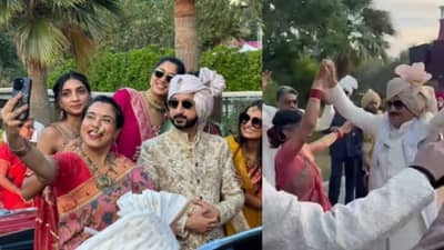 महाराष्ट्राच्या उपमुख्यमंत्र्याच्या सुपुत्राचा हा शाही विवाहसोहळा असून त्यातील वरातीचे काही फोटो आणि व्हिडीओ समोर आले आहेत. या वरातीमध्ये पवार कुटुंबातील अनेक सदस्य दिसत असून दस्तुरखुद्द अजित पवार हेही लाडक्या लेकाच्या लग्नाच्या वरातीत मस्त नाचताना दिसत आहेत. सैराट चित्रपटातील प्रसिद्ध अशा झिंग झिंग झिंगाट या गाण्यावर अजित दादांनी ठेका धरला असून त्यांची सुहास्य मुद्राही दिसत आहे. राष्ट्रवादीच्या खासदार सुप्रिया सुळे यांनी हे फोटो आणि व्हिडीओ शेअर केले आहेत.
