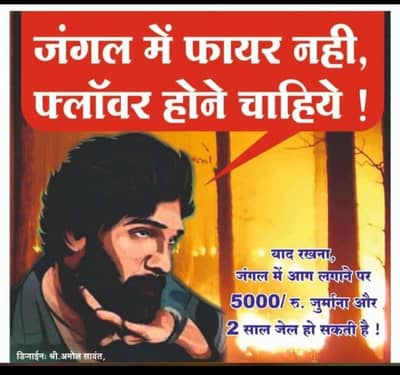 अमरावती : उन्हाळा सुरू झाला की जंगलात आगीच्या घटना घडतात. आग लागली म्हणजे जंगल जळून खाक होतं. छोटे-छोटे रोपटे नष्ट होतात. जमिनीवरील किडकांचाही यात मृत्यू होतो. जंगलाची अपरिमीत हानी होते. या आगी लागू नयेत, यासाठी अमरावती जिल्ह्यातील मेळघाट येथे आग मुक्त अभियान (Fire Free Campaign) राबविण्यात येत आहे. जनजागृती केली जात आहे. त्यासाठी पोस्टरची धूम सध्या सुरू आहे. यामध्ये जंगलात आग लावल्यास पाच हजार रुपये दंड तसेच दोन वर्षांच्या कैदेची शिक्षा होणार आहे. ही जाहिरात सध्य लोकांचे लक्ष्य वेधून घेत आहे. जंगल में फायर नहीं, फ्लॉवर होणे चाहियें, असे अल्लू अर्जून (Allu Arjun) सांगतोय, तर आली रे आली आता जंगलात आग लावणाऱ्यांची बारी आली, असं अभिनेता अजय देवगण (Ajay Devgan) सांगतोय. या दोन्ही पोस्टरमुळं जंगलात आग लावणाऱ्यांचे धाबे दणाणले आहेत.