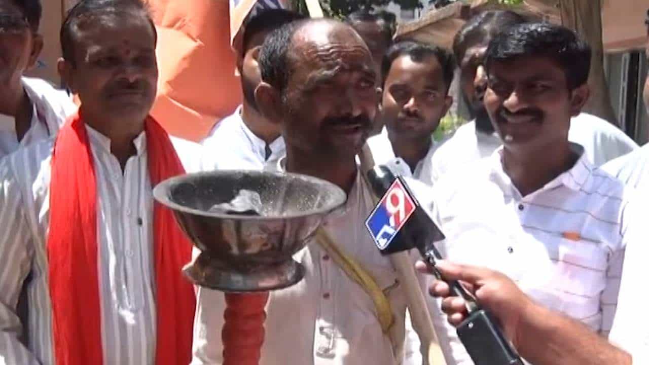 जालना जिल्ह्यातील बदलापूर तालुक्यातून उद्धव ठाकरे यांच्या सभेसाठी एक सर्वसामान्य व्यक्ती आला. त्यांच्या पायात चपलासुद्धा नाहीत. त्याच्या हातात झेंडा आणि मशाल चिन्ह आहे. अंकूश कुंडलिग पवार असं या कार्यकर्त्याचं नाव आहे.तो पांगरी येथीर रहिवासी आहे. उद्धव ठाकरे यांच्या उपस्थितीत वज्रमूठ सभा होत आहे. या सभेसाठी हा कार्यकर्ता गावातून पायी चालत आला आहे. विशेष म्हणजे त्यांच्या पायात चप्पलसुद्धा नाही.