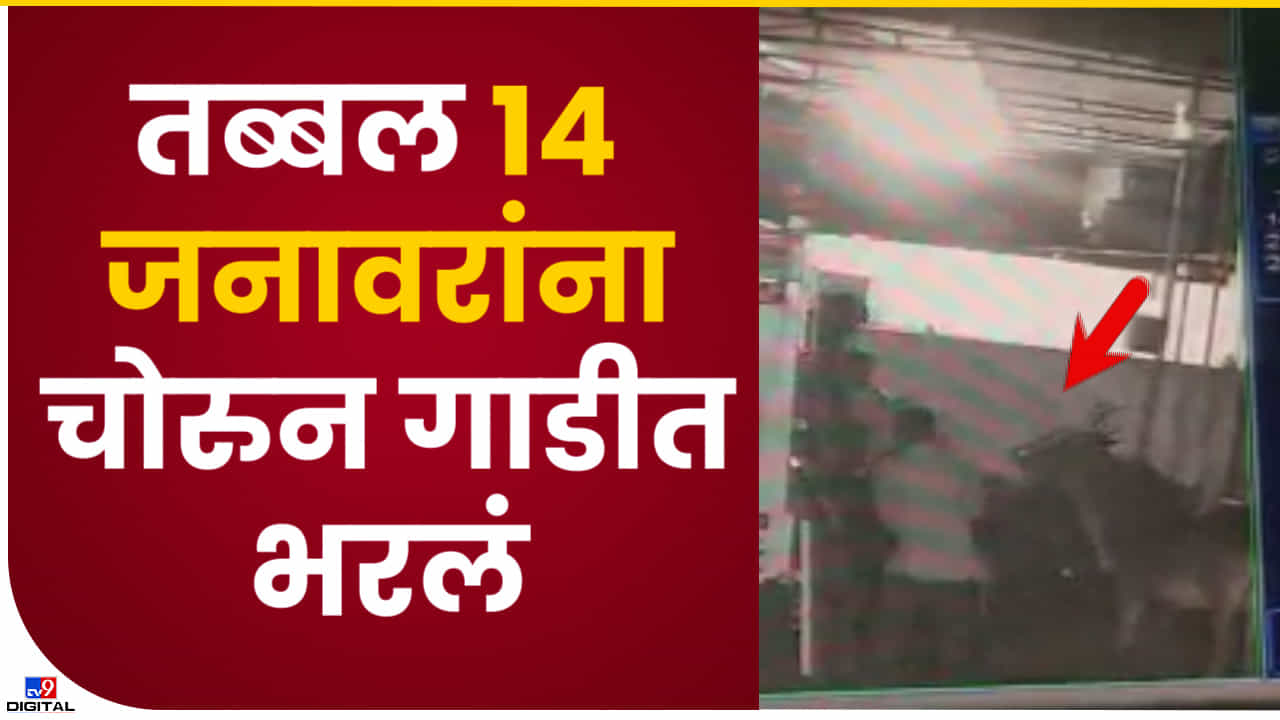 पैठण तालुक्यातील मुधलवाडी एमआयडीसी परिसरात तब्बल 14 जनावरांची चोरी करण्यात आली. जनावरे चोरून गाडीत भरून नेत असतानाचा चोरीचा CCTV व्हिडीओही आता समोर आली आहे. एका टेम्पोत ही जनावरं भरली गेली. मोकाटपणे कोणाचंही भय नसल्याप्रमाणे चोरटे जनावरांना गाडीत भरत असल्याचं सीसीटीव्ही कॅमेऱ्यामध्ये दिसून आलंय. 2 ऑगस्ट रोजी करण्यात आलेल्या या चोरीचं सीसीटीव्ही फुटेज आता समोर आलं आहे. पहाटे दोन ते अडीच वाजण्याच्या दरम्यान कुणीही नाही हे पाहून चोरट्यांनी डाव साधल्याचं दिसून आलंय.