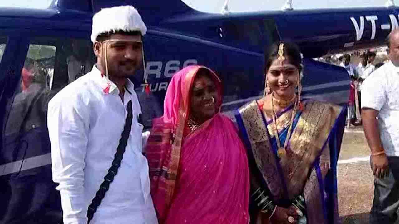 PHOTO | नवराईला न्यायला हेलिकॉप्टर, लेकीच्या निरोपासाठी अख्खा गाव हेलिपॅडवर जमला, औरंगाबादच्या लग्नाची गोष्ट!