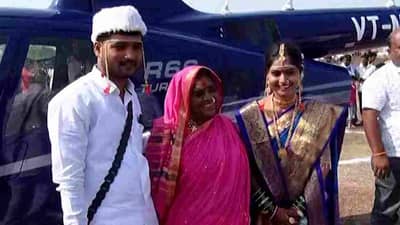 औरंगाबाद जिल्ह्यातील करमाड गावांमध्ये नवरीला घेऊन जाण्यासाठी नवरदेवाने थेट हेलिकॅप्टर आणलं होतं मोठ्या थाटामाटात संपूर्ण गावावरून हेलिकॉप्टर फिरवत नवरदेव नवरीला सासरी घेऊन गेलाय. या लग्नातल्या नवरदेवाचं नाव राम लांडे असं आहे तर चित्रा कोरडे असं नवविवाहित नवरीचं नाव आहे.