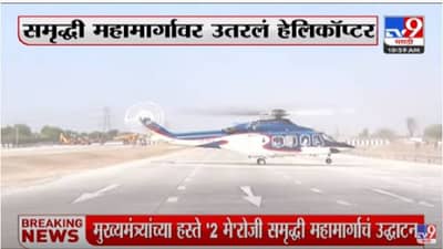 वैजापूर-गंगापूर तालुक्यादरम्यान मंत्री एकनाथ शिंदे यांचं हेलिकॉप्टर समृद्धी महामार्गावर पहिल्यांदाच उतरवण्यात आलं. मुंबईतून औरंगाबादकडे येताना एकनाथ शिंदे यांनी आपला हवाई मार्ग समृद्धी महामार्गाला समांतर असा ठेवला होता. या मार्गाने त्यांनी समृद्धी महामार्गाची पाहणी केली. वैजापूर-गंगापूर दरम्यानच्या इंटरचेंजवरही शिंदे यांनी ही पाहणी केली. दोन ते तीन वेळा त्यांनी हेलिकॉप्टर महामार्गावरून फिरवले. आंतरराष्ट्रीय दर्जाचा असा हा महामार्ग असून यावर हेलिकॉप्टर आणि विमानदेखील उतरवले जाण्याची शक्यता आहे. आज प्रथमच इथे हेलिकॉप्टर उतरवण्यात आलं.