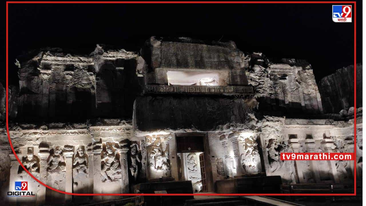 औरंगाबाद | उंच डोंगरावरून एकाच पाषाणात कोरलेली लेणी किंवा शिल्प हे वेरुळ येथील कैलास लेणीचं (Ellora Caves) वैशिष्ट्य. जगात अशी फक्त तीनच शिल्प आहेत. आफ्रिका, भारतातील तमिळनाडू आणि महाराष्ट्रात औरंगाबादमधील वेरुळ येथील ही लेणी. यामुळेच तर जगभरातील पर्यटक (Tourists) आणि अभ्यासकांना ही लेणी भुरळ घालते. औरंगाबादकर आणि पर्यटकांनी दिवसाच्या उजेडात या लेणीचं सौंदर्य डोळ्यात अनेकदा साठवलं असेल, मात्र रात्रीच्या मंद प्रकाशात कैलास लेणीतली शिल्प पाहण्याची संधी नुकतीच औरंगाबादकरांना मिळाली. निमित्त होतं जागतिक वारसा दिनाचं (World Heritage Day). पुरातत्त्व सर्वेक्षण विभागाच्या वतीने नुकताच या ठिकाणी एक महोत्सव घेण्यात आला. यावेळी कैलास लेणी परिसरात 300 प्रकाशझोत लावण्यात आले होते.