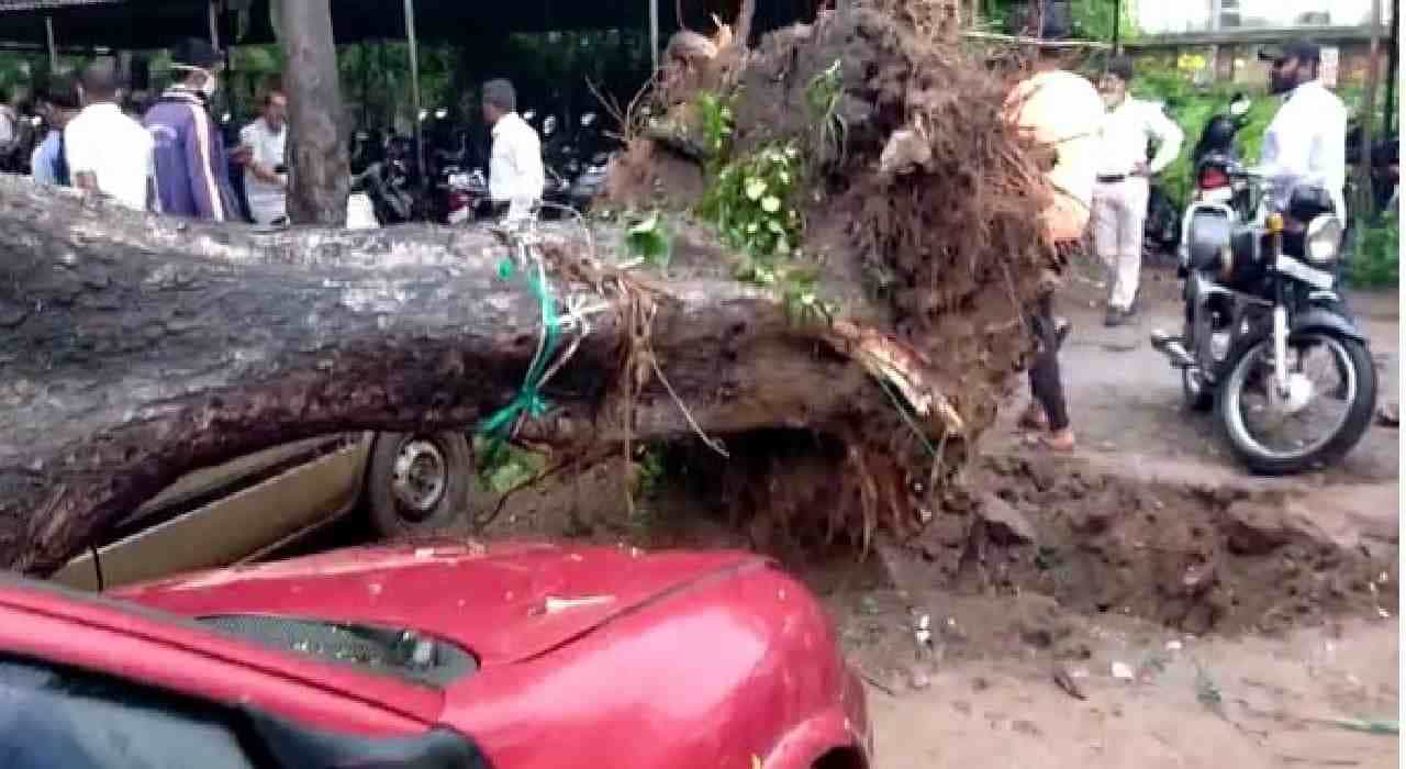 मागील आठवड्यातील पावसामुळे महापालिकेच्या परिसरात मोठे झाड पडले होते. तीच मालिका अजूनही सुरु असून आता शहरातील कोर्ट परिसरातील पार्किंमध्ये मोठे झाड कोसळले. आपत्कालीन पथकाद्वारे हे झाड हटवण्याचे प्रयत्न सुरु आहेत.