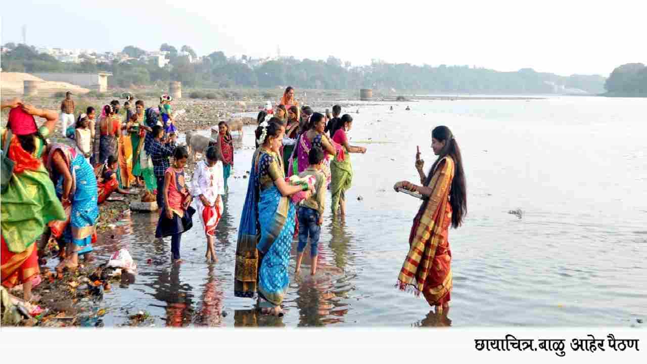 गोदावरी नदीच्या काठावरच महिला एकमेकिंना हळदी-कुंकू देऊन नदीलाही वाण अर्पण करतात. काल मकर संक्रांतीनिमित्त पैठणमधील गोदावरीचा नदीच्या काळावर महिलांनी याच पद्धतीने हा सण साजरा केला.