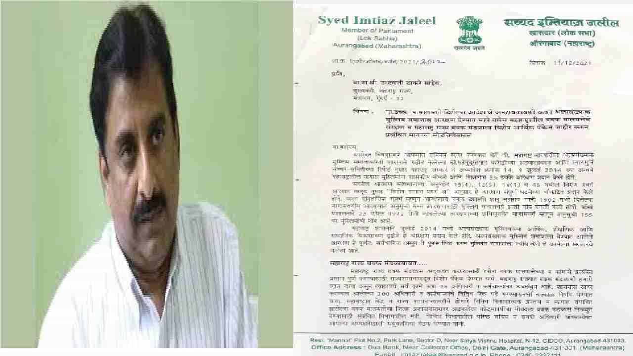 एमआयएमचे खासदार इम्तियाज जलील यांनी मुख्यमंत्री उद्धव ठाकरे यांना लिहिलेल्या पत्रात, अल्पसंख्याक मुस्लिम समाजाला आरक्षण देण्यात यावे, अशी मागणी केली आहे. तसेच महाराष्ट्रातील वक्फ मालमत्तेचे संरक्षण व महाराष्ट्र राज्य वक्फ मंडळाला विशेष आर्थिक पॅकेज जाहीर करून प्रलंबित मागण्या सोडवण्यात येण्याचीही मागणी या पत्राद्वारे केली. मुस्लिम समाजाला त्वरीत 5 टक्के आरक्षण, मराठा आरक्षणाच्या धर्तीवर मुस्लिम समाजाच्या सुशिक्षित बेरोजगारांना शासकीय नोकरीसाठी विधानसभेत त्वरीत कायदा मंजूर करण्यात यावा, मुस्लिम समाजाच्या विकासासाठी दरवर्षी शंभर कोटींची आर्थिक तरतूद करण्यात यावी, वक्फ मंडळाला अद्ययावत करण्यासाठी दरवर्षी 500 कोटी रुपयांची तरतूद करण्यात यावी आदी 8 मागण्या या पत्राद्वारे मुख्यमंत्र्यांना करण्यात आल्या आहेत.
