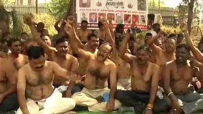 राज्यभरातील एसटी कर्मचाऱ्यांनी पुकारलेलं आंदोलन आता चांगलंच चिघळलं आहे. या संपात सहभागी झालेल्या औरंगाबाद आगारातील सर्व कर्मचाऱ्यांनी अर्धनग्न अवस्थेत आंदोलन सुरु केलं आहे. मंगळवारी सकाळपासूनच कर्मचाऱ्यांनी आपल्या मागण्या मान्य करण्यासाठी तीव्र निदर्शनं सुरु केली आहेत.