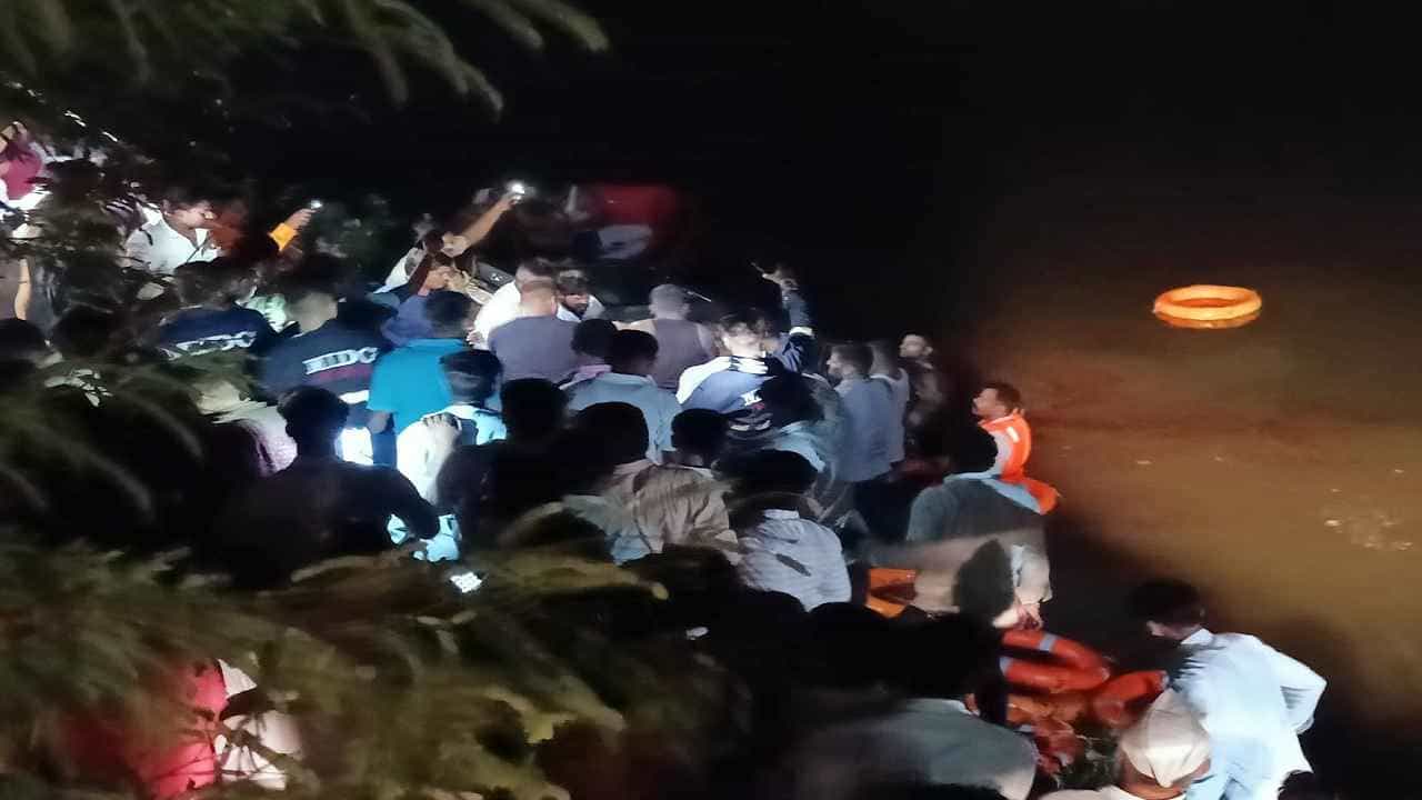 या बंधाऱ्यात जवळपास 30-40 फूट पाणी खोल असल्याने कारचा शोध घेण्यास अडचण येत होती. या वेळी अग्निशमन दलाचे 25 जवान व गावकऱ्यांनी पाच तास अथक प्रयत्न करून सायंकाळी पावणेसात वाजता क्रेनच्या मदतीने कार पाण्याबाहेर काढली.