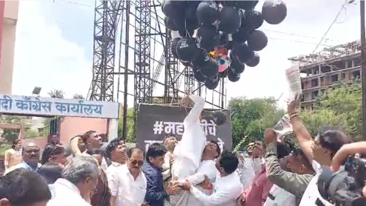 जळगाव शहरात राष्ट्रवादी काँग्रेस शरद पवार गटाच्या वतीने महायुतीच्या काळ्या कारनाम्यांची आशयाची दहीहंडी फोडण्यात आली. महायुतीच्या सरकारचा अनोख्या पद्धतीने निषेध व्यक्त करण्यात आला. रत्नागिरी जिल्ह्यातील छत्रपती शिवाजी महाराजांचा पुतळा कोसळला. त्यावरूनही महायुती सरकारवर टीका करण्यात येऊन निषेध व्यक्त करण्यात आला. वेगवेगळ्या घटनांची बॅनर आणि हातात काळे फुगे घेऊन निषेध व्यक्त करण्यात आला. यावेळी दहीहंडी फोडण्यात येवून निषेध व्यक्त करण्यात आला.