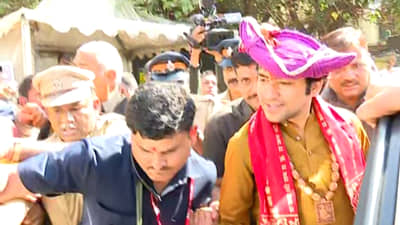 मुंबई : बागेश्वर धाम (Bageshwar Dham) येथील धीरेंद्र शास्त्री (Dhrirendra Shashtri) उर्फ बागेश्वर बाबा यांचा महाराष्ट्र दौरा सध्या जोरदार चर्चेत आहे. धीरेंद्र शास्त्रींच्या दौऱ्यावरून राजकीय वातावरण चांगलंच तापलंय. मीरा रोड येथे बागेश्वर बाबा यांच्या सत्संगाचा कार्यक्रम आयोजित करण्यात आला होता. शनिवार आणि रविवारी हा कार्यक्रम झाल्यानंतर आज बागेश्वर बाबा मुंबईतील प्रसिद्ध देवस्थानाच्या दर्शनाला निघाले. मुंबईकरांचं आराध्य दैव असलेल्या मुंबादेवी आणि सिद्धिविनायकाचं दर्शन बागेश्वर बाबा यांनी घेतलं. यावेळी महाराष्ट्रातील बडे नेते बागेश्वर धाम यांच्यासोबत उपस्थित होते. यावेळी आमदार रविराणा, खासदार मनोज तिवारी, आमदार सदा सरवणकर, आमदार गीता जैन आदी नेते उपस्थित होते.