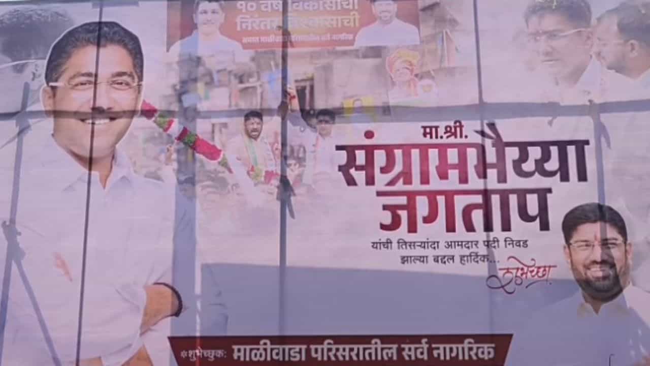 अहिल्यानगर जिल्ह्यात यंदा मतदानाचा उच्चांक झाला. एकूण सरासरी 71.75 टक्के मतदान झाले. अहिल्यानगर शहरातील माळीवाडा वेश परिसरातून अजित पवार यांच्या राष्ट्रवादी पक्षाकडून संग्राम जगताप पुन्हा एकदा निवडणुकीच्या रिंगणात आहे. त्यांच्या समोर शरद पवार गटाचे अभिषेक कळमकर निवडणूक रिंगणात आहे. परंतु जगताप यांच्या कार्यकर्त्यांना त्यांच्या विजयाची खात्री आहे. त्यामुळे तिसऱ्यांदा आमदार पदी निवड झाल्याबद्दल हार्दिक अभिनंदन अशा अशाचे बॅनर लावण्यात आले आहे. संग्राम जगताप यांचे कट्टर समर्थक माजी नगरसेवक अविनाश घुले यांनी हे बॅनर लावले आहे. त्यामुळे सध्या याच बॅनरची चर्चा नगर शहरात सुरू आहे. कालच विधानसभा निवडणुकीसाठी मतदान पार पडले.