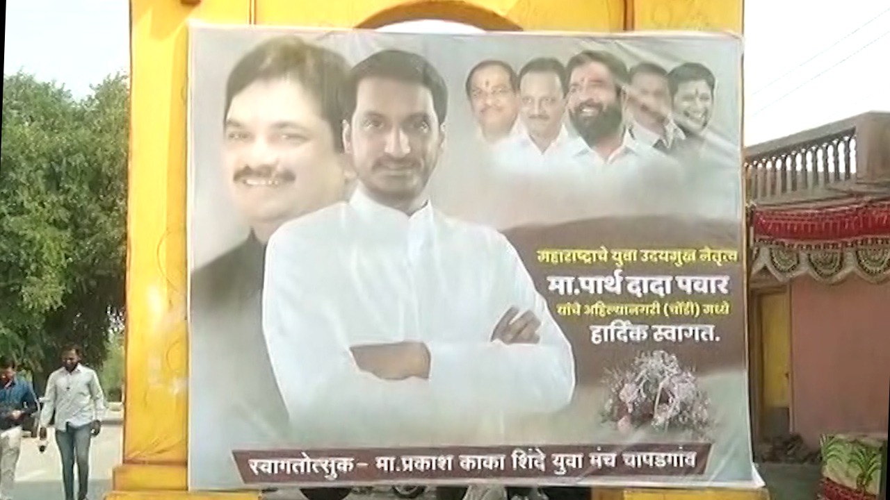 भारतीय जनता पक्षाचे आमदार राम शिंदे यांच्या कार्यक्रमाला अजित पवार यांचे पुत्र पार्थ पवार हजेरी लावणार आहे. त्यासाठी रोहित पवार यांच्या मतदार संघात पार्थ पवार यांच्या स्वागताचे बॅनर्स लावले आहे. या बॅनर्सवर पार्थ पवार आणि राम शिंदे यांचे मोठे फोटो लावले आहेत. मुख्यमंत्री एकनाथ शिंदे, उपमुख्यमंत्री देवेंद्र फडणवीस, राष्ट्रवादी काँग्रेसचे नेते अजित पवार, मंत्री राधाकृष्ण विखे पाटील यांचे फोटो आहेत. विशेष म्हणजे रोहित पवार यांचा हा मतदार संघ असून त्यात पार्थ पवार यांच्या स्वागताचे बॅनर लावण्यात आले आहे. या बॅनरमुळे विविध चर्चांना उधाण आले आहे.