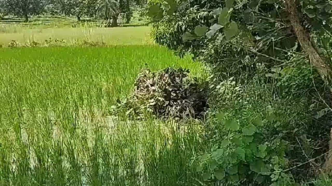 शेतात पानांनी झाकून ठेवला वाघाचा मृतदेह