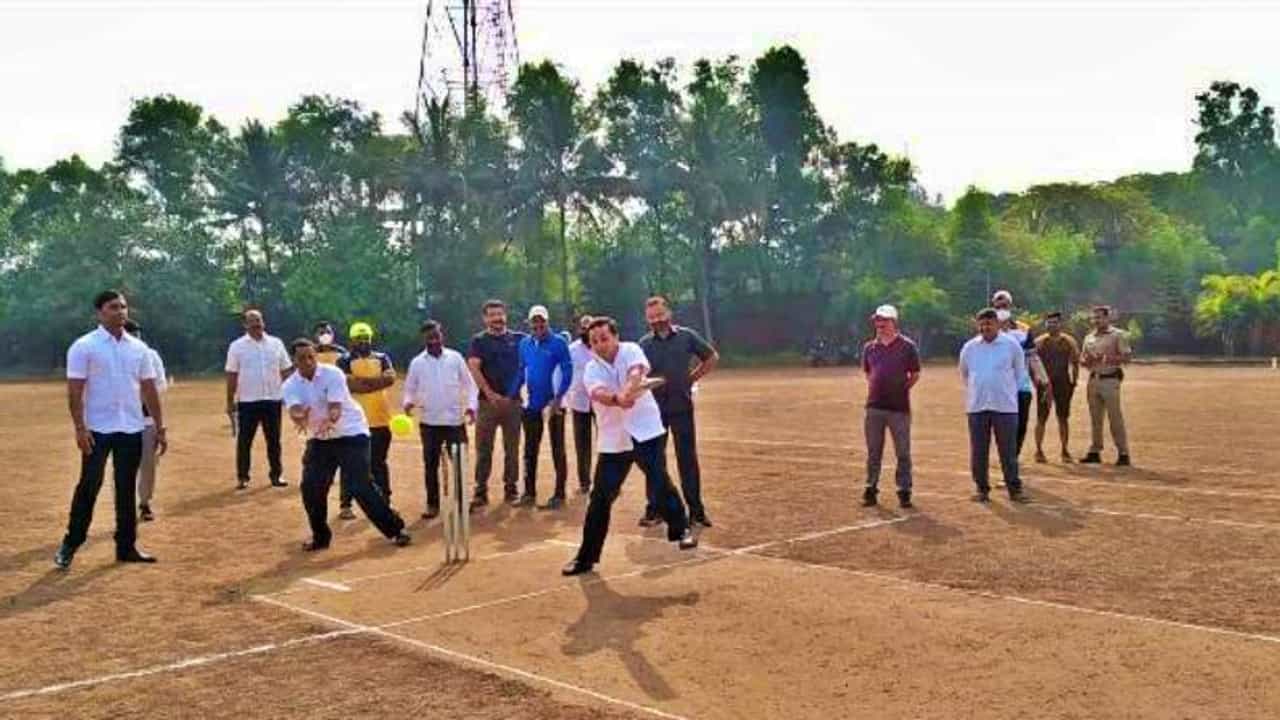 BJP MLA Nitesh Rane play Cricket with journalist in Sindhudurg