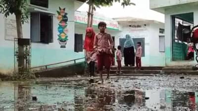 बुलडाणा : चिखली नगरपालिकेच्या शाळेच्या आवारात शेजारील नालीचे घाण पाणी घुसले. शाळेतील विद्यार्थ्यांना या घाण पाण्याचा त्रास होतोय. आज शाळेत जातानासुद्धा विद्यार्थ्यांना मोठी कसरत करावी लागली. यामुळे मात्र विद्यार्थ्यांचे आरोग्य धोक्यात (Health endangered) आलेय. बुलडाणा जिल्ह्यातील चिखली नगरपालिकाची सैलानी नगर (Sailani Nagar) येथे शाळा आहे. या शाळेच्या शेजारीच भोगावती ग्रामपंचायतीने (Bhogawati Gram Panchayat) काही दिवसापूर्वी नाली खोदून टाकली आहे. मात्र त्याचे बांधकाम अद्यापही पूर्ण केले नाही. गेल्या काही दिवसांपासून जिल्ह्यासह चिखली परिसरात पाऊस सुरू आहे. या सैलानी नगरातील सांडपाणी सुद्धा याच नालीमधून वाहते. मात्र नाली खोदलेली असल्याने आणि काम अर्धवट राहिल्याने या नालीतील सांडपाणी थेट नगर पालिकेच्या शाळेच्या आवारात घुसले.