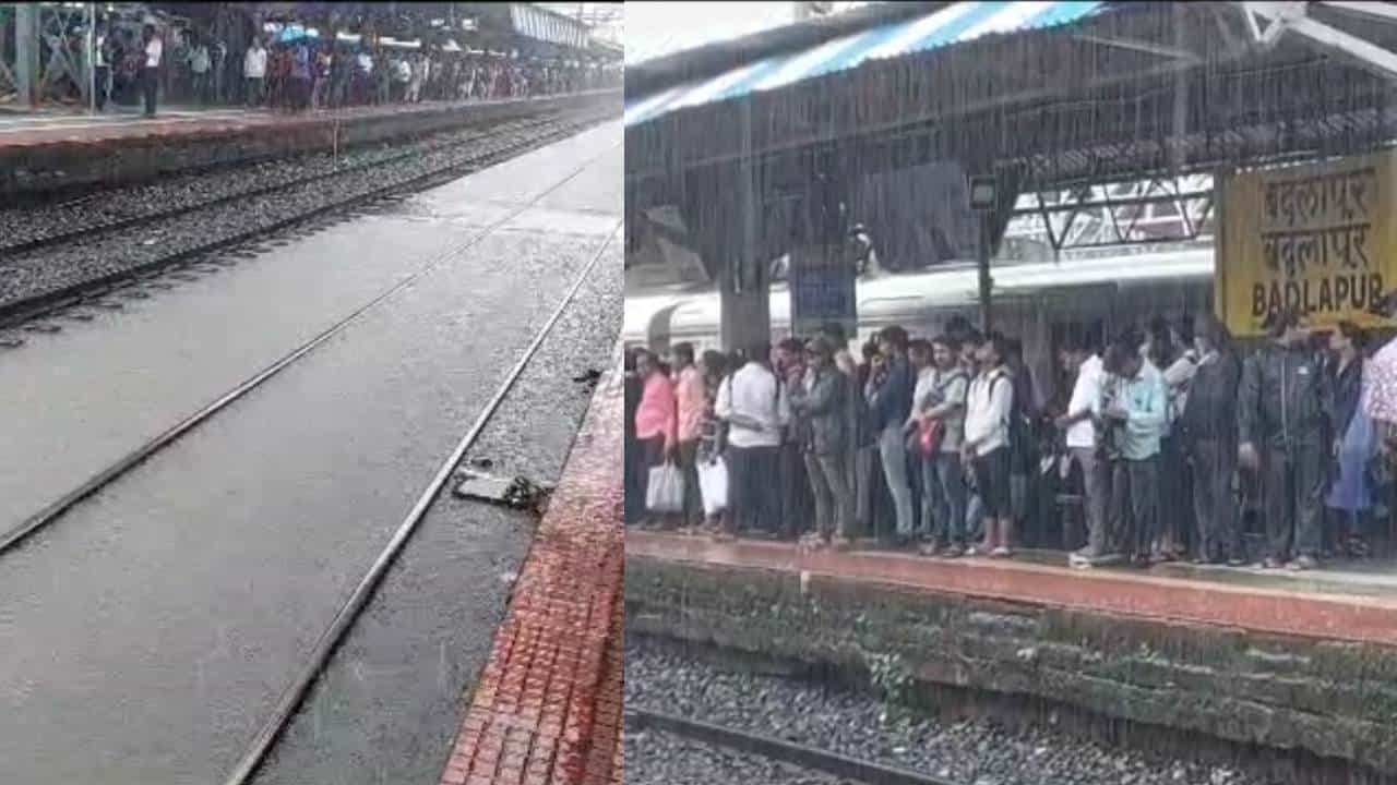 ठाणे | 19 जुलै 2023 : ठाणे जिल्ह्यात आणि नवी मुंबईत काल रात्रीपासून पावसाने धुमाकूळ घातला आहे. त्यामुळे बदलापूर, अंबरनाथ आणि नवी मुंबईत अनेक भागात पाणी तुंबले आहे. बदलापूर आणि अंबरनाथ आणि हार्बर मार्गावर रुळावर पाणी भरलं आहे. त्यामुळे या मार्गावरील रेल्वे सेवा विस्कळीत झाली आहे. बदलापूर आणि अंबरनाथ दरम्यान रेल्वे रुळावर पाणी साचल्याने मध्य रेल्वेची लोकल सेवा ठप्प झाली आहे. रेल्वे उशिराने धावत असल्याने बदलापूर, अंबरनाथ, उल्हासनगर आणि नवी मुंबईतील चाकरमान्यांचे प्रचंड हाल झाले आहेत. त्यामुळे अनेक रेल्वे स्थानकांवर प्रचंड गर्दी झाली आहे.