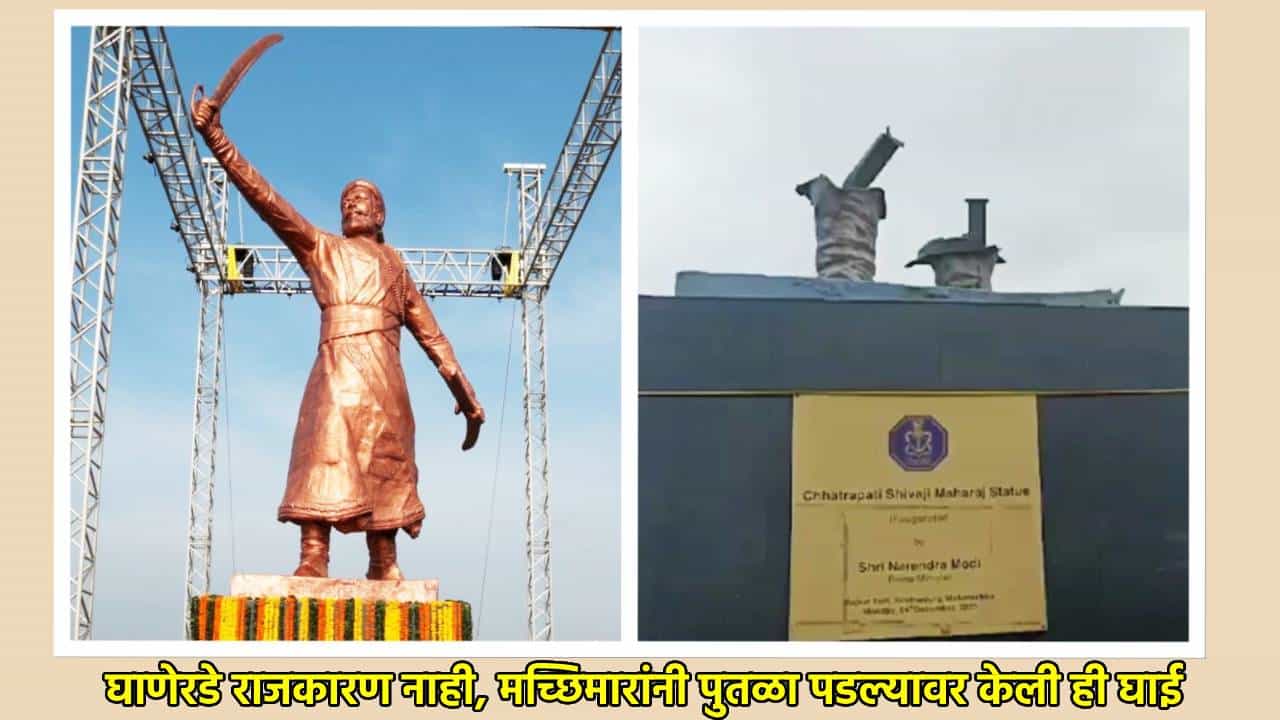नौदल दिनानिमित्त आठ महिन्यांपूर्वी बसवलेला छत्रपती शिवाजी महाराजांचा पुतळा कोसळला. सिंधुदुर्ग जिल्ह्यातील मालवणच्या राजकोट किल्ल्यावर हा पुतळा बसवण्यात आला होता. त्यानंतर राज्यात शिवप्रेमींमध्ये संतापाची लाट उसळली. काल मालवणात त्यावरुन जो शिमगा झाला, तो उभ्या महाराष्ट्रानेच नाही तर देशाने पाहिला. या मुद्दावरुन राजकारण तापले आहे. पण पुतळा पडल्यावर मच्छिमारांनी केलेली ही घाई, राजकारण्यांच्या डोळ्यात झणझणीत अंजन घालणारी ठरली आहे.