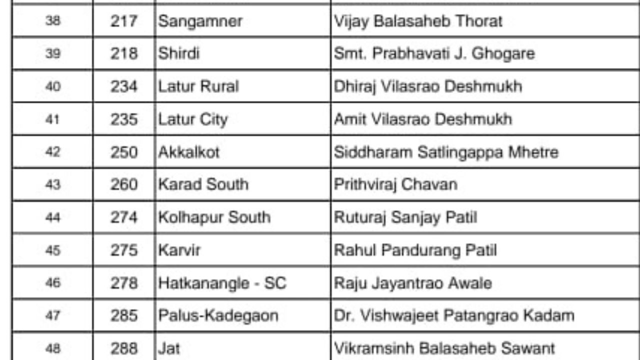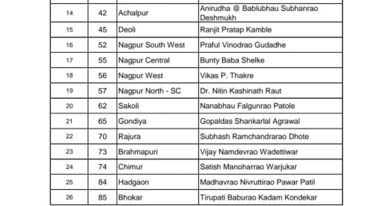 महाविकास आघाडीच्या जागावाटपाच्या चर्चेनंतर अखेर काँग्रेसकडून देखील उमेदवारांची पहिली यादी जाहीर करण्यात आली आहे. काँग्रेसकडून विधानसभा निवडणुकीसाठी एकूण 48 उमेदवारांच्या नावांची घोषणा करण्यात आली आहे.
