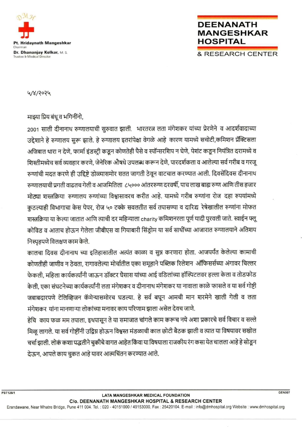 Deenanath Mangeshkar Hospital : दीनानाथ मंगेशकर रुग्णालयाचा मोठा निर्णय, यापुढे…