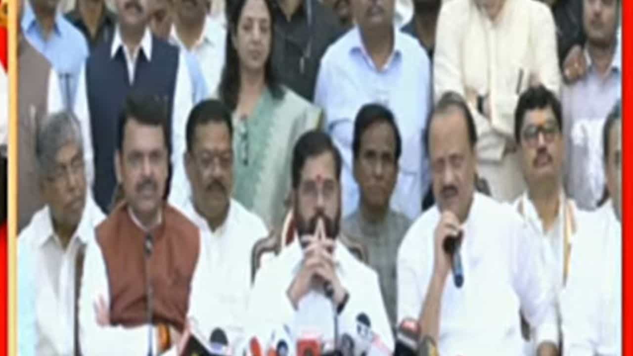 महायुतीच्या नेत्यांनी आज राज्यपालांकडे सत्तास्थपानेचा दावा केला, या दाव्यानंतर महायुतीमधील प्रमुख नेते देवेंद्र फडणवीस, एकनाथ शिंदे आणि अजित पवार यांची महत्त्वाची पत्रकार परिषद पार पडली.