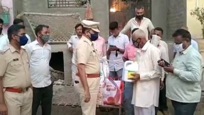 धुळे: खाकी वर्दीतील पोलिसांच्या माणुसकीचं दर्शन घडवणारा प्रसंग धुळे जिल्ह्यात समोर आला आहे. गॅस सिलेंडरच्या स्फोटात संपूर्ण घर जळून खाक झालेल्या कुटुंबाला पोलीस निरीक्षक दुर्गेश तिवारी यांच्याकडून किराणा साहित्य वाटप करण्यात आलंय. पोलीस अधिकारी पदाचं कर्तव्य बजावत असताना दुर्गेश तिवारींनी दाखवलेल्या माणुसकीचं दर्शन सर्वत्र चर्चेचा विषय ठरला आहे. (Dhule Dondaicha Police Inspector Durgesh Tiwari help family who lost all things due to fire outbreak)