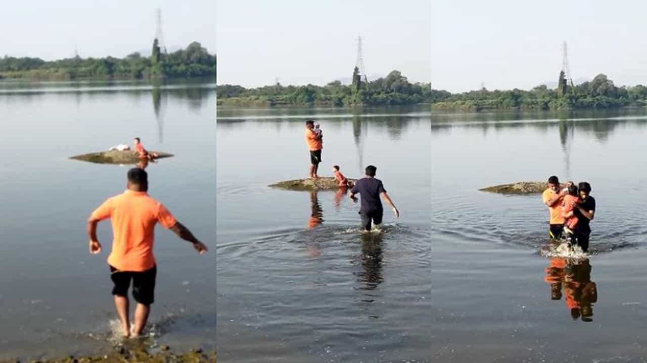 डोंबिवलीच्या खाडीतील पाण्याच्या मधोमध असलेल्या टापूवर दोन चिमुकले रडत होते. चारही बाजूने पाण्याने वेढलेल्या या टापूवर त्या लहानग्यांना बघून ग्रामस्थ हैराण झाले. त्यांना कसं वाचवावं याचाच सर्वजण विचार करत होते. यादरम्यान, या मुलांना वाचवण्यासाठी स्वत:च्या जीवाची पर्वा न करता कचोरे गावातील ग्रामस्थांपैकी दोन तरुण गणेश मुकादम आणि तेजस मुकादम हे खाडीच्या पाण्यात उतरले. त्या दोन मुलांना पाण्यातून बाहेर काढले. या दोन तरुणांमुळे त्या लहानग्यांचे जीव वाचले.