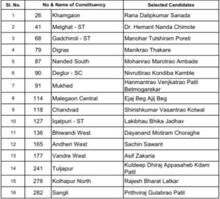 कॉंग्रेसने आपली तिसरी यादी जाहीर केलेली आहे. या तिसऱ्या यादीत 16 जणांना स्थान देण्यात आहे. तर शिवसेना एकनाथ शिंदे गटाने मुंबईत कॉंग्रेसमधून आयात केलेल्या नेत्यांना उभे करण्याची योजना आखली आहे.