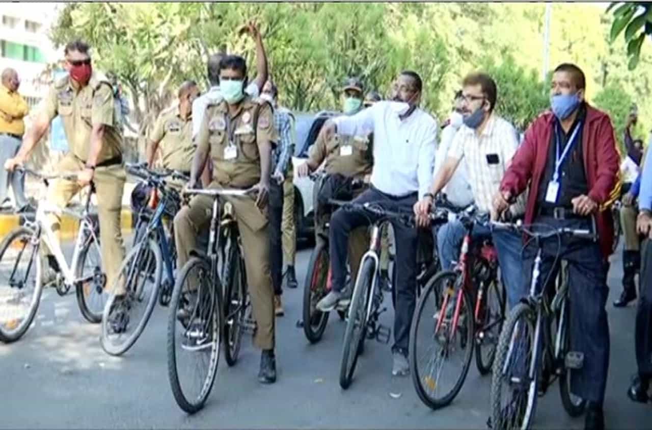 Employees of Nagpur Municipal Corporation come to the office on bicycles
