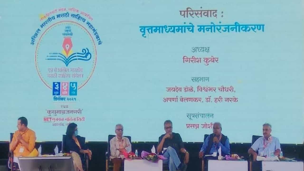 कुसुमाग्रजनगरी, नाशिकः आपल्याला प्रगल्भतेची आस आहे का, ती तयार नसेल तर माध्यमांनी करावी, असे आवाहन रविवारी ज्येष्ठ पत्रकार गिरीश कुबेर यांनी केले. तर आजची पत्रकारिता सत्य सांगायचे विसरली आहे. सत्याकडे बघून लाज वाटते. महागाई, दारिद्र्य, बेकारी इकडे दुर्लक्ष करून मनोरंजन करणे, हा अंमल माध्यमांना त्रासदायक ठरेल, याची आठवण माध्यम तज्ज्ञ जयदेव डोळे यांनी करून दिली. 94 व्या अखिल भारतीय मराठी साहित्य संमेलनात आज वृत्तमाध्यमांचे मनोरंजनीकरण हा परिसंवाद झाला. यावेळी गिरीश कुबेर, जयदेव डोळे, विश्वंभर चौधरी, पत्रकार अपर्णा वेलणकर, विचारवंत डॉ. हरी नरके, पत्रकार प्रसन्न जोशी यांनी सध्याच्या पत्रकारितेवर थेट भाष्य करत एक समाज आणि एक पत्रकार म्हणून उपस्थितांना आत्मचिंतन करायला भाग पाडले.