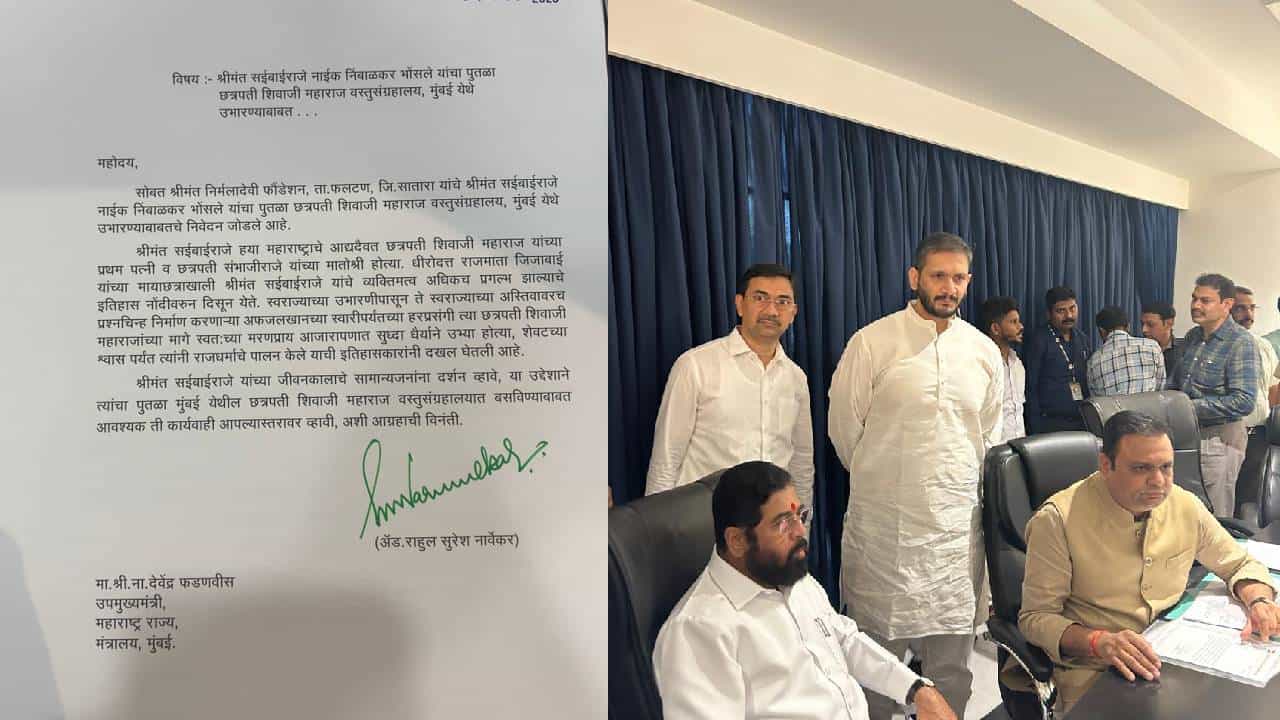 श्रीमंत सईबाईराजे यांच्या जीवनकालाचे सामान्यजनांना दर्शन व्हावे, या उद्देशाने त्यांचा पुतळा मुंबई येथील छत्रपती शिवाजी महाराज वस्तुसंग्रहालयात बसविण्याबाबत आवश्यक ती कार्यवाही आपल्यास्तरावर व्हावी, अशी आग्रहाची विनंती विधानसभा अध्यक्ष राहुल नार्वेकर यांनी मुख्यमंत्री एकनाथ शिंदे यांना केली आहे.