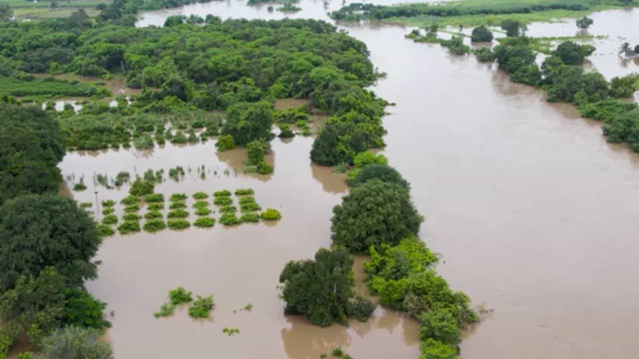 राज्याच्या विविध भागात मुसळधार पाऊस पडत आहे. या पावसामुळे धाराशिव आणि सोलापूर जिल्ह्यांमध्ये सीना नदीला पूर आला आहे. नदीकाठच्या शेतात पाणी शिरले आहे. याचे काही फोटो समोर आले आहेत.