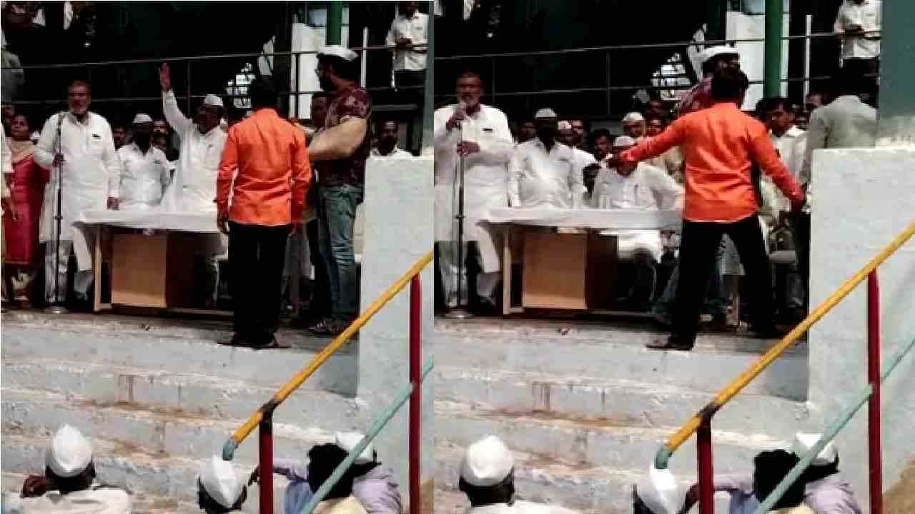 (former minister siddharam mhetre used abusive word to farmer video went viral on social media)