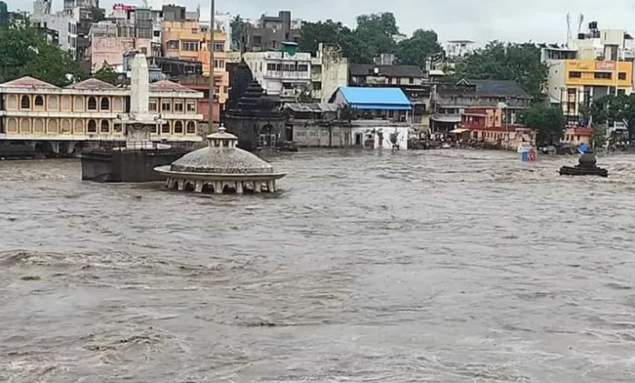नाशिकमध्ये गोदावरीला दुसऱ्यांदा पूर; रामसेतू पुलाजवळ पाणी, नदीकाठची मंदिरे पाण्याखाली