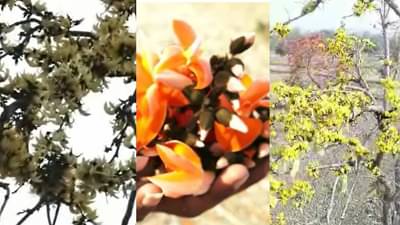 गोंदिया : होळी म्हटलं की लाकडाची होळी डोळ्यासमोर येते. त्यानंतर येथे ती रंगपंचमी. रंगपंचमीला रंगांची उधळण केली जाते. निसर्गातही रंगांची उधळण केले गेली आहे. वसंत ऋतू लागताच पळसाला फुलं येतात. लाल रंगांची फुलं बहुतेक ठिकाणी दिसतात. पण, याशिवाय पिवळे आणि पांढरे फुलंदेखील पूर्व विदर्भात दिसतात. तिरोडा पिवळ्या रंगाची फुलं आहे. सालेकसा येथे पांढऱ्या रंगाची फुल आहे. ही फुल पाहण्यासाठी नागरिक गर्दी करत आहेत. पिवळ्या पळसाला फुल यायला सुरवात झाली आहे. मात्र पिवळ्या आणि पांढरा रंगाचा पळस फुलं ही क्वचितच पाहायला मिळतात.