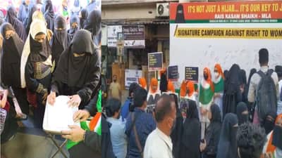 मुंबई : कर्नाटकमध्ये हिजाब (Karnatak Hijab) घातल्याने मुस्लिम मुलींना प्रवेश नाकारल्याच्या घटनेमुळे उफाळून आलेला वाद चांगलाच चिघळला आहे. कर्नाटकमधील उडपी (Udipi) येथील कुंदापूर परिसरातील पीयू महाविद्यालयात हा प्रकार घडला. मात्र याचे पडसाद आता महाराष्ट्र आणि मुंबईत पाहायला मिळत आहे. कर्नाटकात हिजाबला विरोध केल्याच्या पार्श्वभूमीवर ठाण्यातील मुंब्रा येथे मुस्लिम महिलांनी (Muslim Women) विरोध दर्शवला. मुंब्रा येथे मुस्लिम तरुणी एकत्र आल्या आणि त्यांनी इंडियन मुस्लिम यूनियनच्या बॅनरखाली कर्नाटकातील घटनेचा निषेध व्यक्त केला. तसंच मुंबईतील मदनपुरा भागात हिजाबच्या समर्थनात मुस्लिम महिला आणि तरुणींनी सह्यांची मोहीम राबवली. मोठ्या प्रमाणात मुस्लिम तरुणी आणि महिला या मोहिमेत सहभागी झाल्या होत्या. त्यावेळी चोख पोलीस बंदोबस्त तैनात करण्यात आला होता.