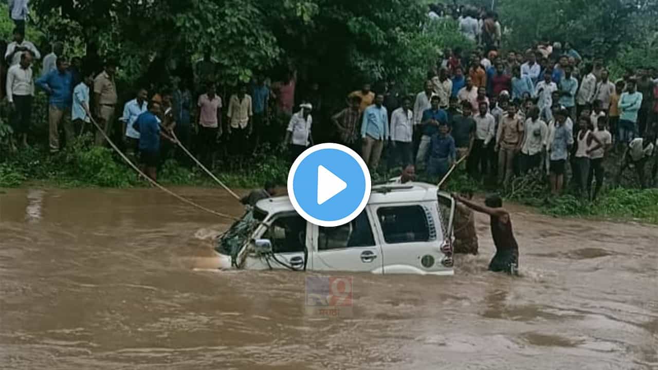 या स्कॉर्पिओ मध्ये चार ते पाच लोक बसलेले असताना पुलावरून गाडी काढण्याचा धाडस ड्रायव्हरने केले. मात्र, तेवढ्यात पाण्याचा लोंढा आला आणि पाण्याच्या धक्क्यामुळे पुलावरून स्कॉर्पिओ नाल्याच्या प्रवाहात वाहत गेली.