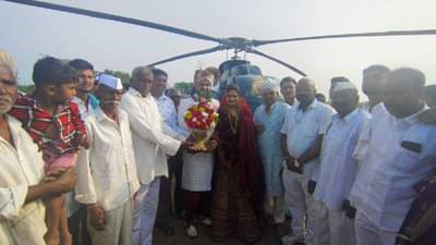 आपण निवडणूकात राजकीय नेत्यांना प्रचार सभांसाठी हॅलिकॉप्टरमधून उतरताना पाहीले असेल, परंतू जळगाव येथील चाळीसगावात नवरीला घेऊन जाण्यासाठी नवरदेवाने चक्क हॅलिकॉप्टरच आणले. मग काय सगळं गाव लाडक्या नवरीला निरोप देण्यासाठी हॅलिपॅडवर पोहचले. आणि साश्रूनयनांनी नवरीने माहेरच्या मंडळींना निरोप दिला. हा लग्न सोहळा पंचक्रोशीत गाजला. चाळीसगावातील अशाच एक लग्न सोहळ्याची चर्चा सुरु आहे.