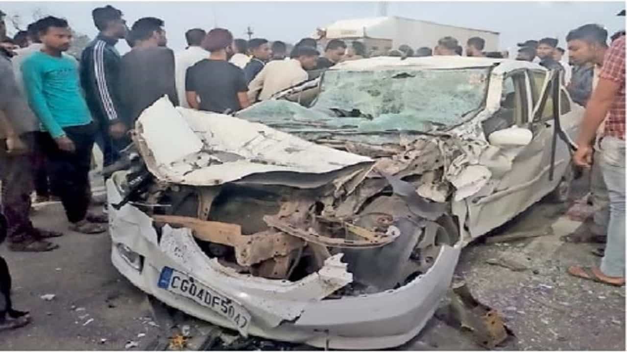छत्तीसगढमधील रायपूरचे दीपकसिंग आलुवालिया हे पत्नी गुंजन, दीड वर्षाची मुलगी बानी आणि आई सुरजिंदरकौर यांना घेऊन कल्याणला चालले होते. सोबत ड्रायव्हर दीपकसिंह होता. मात्र, कारचे (सी.जी. 04 डी.एफ.5047) मागचे टायर फुटले. त्यामुळे चालकाचे गाडीवरील नियंत्रण सुटले. गाडी थेट तिथे उभ्या असलेल्या टँकरवर आदळली. यात दीपकसिंग यांची दीड वर्षांची मुलगी आणि आई सुरजिंदर कौर यांचा मृत्यू झाला. घटनेत दीपकसिंग आणि त्यांची पत्नी गुंजन, ड्रायव्हर जखमी झाला आहे.