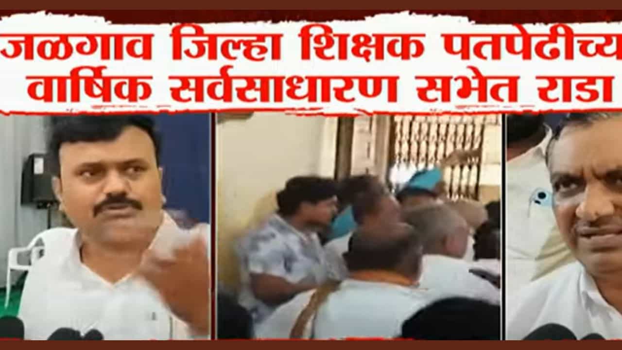 जळगाव शहरातील लेवा भवनमध्ये जळगाव जिल्हा माध्यमिक शिक्षक आणि शिक्षकेतर नोकरांची सहकारी पतपेढीची 71 वे वार्षिक सर्वसाधारण सभा पार पडली. नोकर भरती, वकिल फी वरुन सभेला उपस्थित सभासदांनी अध्यक्षांसह सत्ताधार्यांना चांगलेच धारेवर धरल्याने सभेमध्ये गोंधळ उडाला. सभेमध्ये गोंधळ सुरू असतानाच एक व्यक्ती थेट सभेत शिरला. तो सभेमध्ये विषय मंजूर झाल्याचे व्यासपीठावरील सांगण्यात आल्यानंतर समोर येवून नामंजूर नामंजूर म्हणून ओरडत होता.