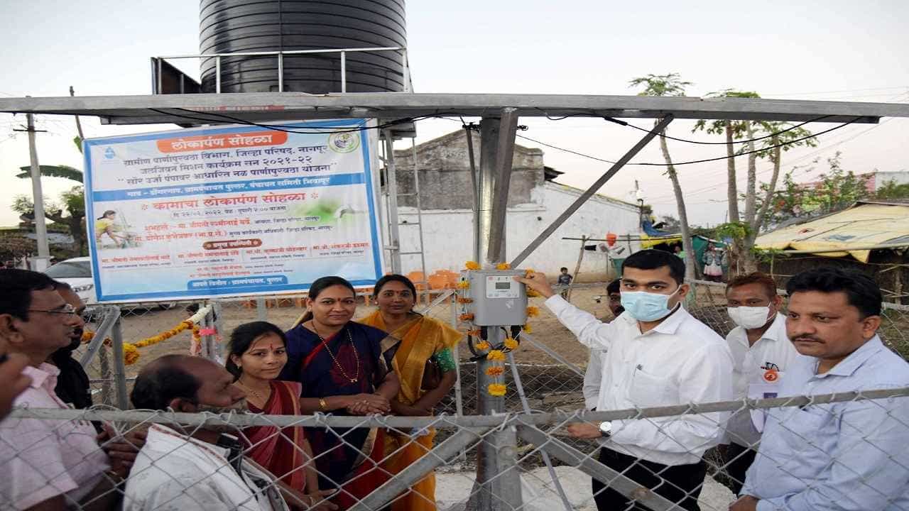 जिल्हा परिषद अंतर्गत ग्रामीण पाणीपुरवठा विभागाद्वारे जीवन मिशन योजनेंतर्गत ज्या गावांमध्ये पाण्याची असुविधा आहे. अशा गावांमध्ये पूर्णवेळ 24 तास पाण्याची सोय करण्याची कल्पना लक्षात घेण्यात आली. जिल्ह्यात सौर ऊर्जेवर आधारित नळयोजना कार्यान्वित करण्याचे मुख्य कार्यकारी अधिकारी योगेश कुंभेजकर यांनी सांगितले. या योजनेंतर्गत 6 लाख 92 हजार खर्चून सौर ऊर्जेवर आधारित 5 हजार लिटर क्षमतेची टँक गावात बसविण्यात आली. यावेळी जिल्हा परिषदेचे मुख्य कार्यकारी अधिकारी योगेश कुंभेजकर, समाज कल्याण सभापती नेमावली माटे, भिवापूर पंचायत समितीच्या सभापती ममता शेंडे, जिल्हा परिषद सदस्य शंकर दडमल, उपकार्यकारी अभियंता निलेश मानकर यावेळी उपस्थित होते.