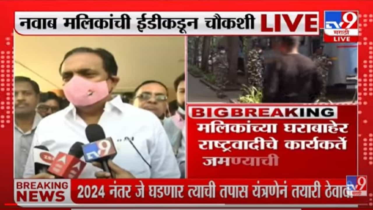 मुंबईः महाविकास आघाडी सरकारमधील कॅबिनेट मंत्री आणि राष्ट्रवादी काँग्रेसचे (NCP) प्रवक्ते नवाब मलिक (Nawab Malik) यांची आज बुधवारी पहाटेपासून ईडीने (ED) चौकशी सुरू केल्यामुळे एकच खळबळ उडालीय. मलिकांच्या घरी ईडीचे अधिकारी पहाटेच धडकले. त्यांनी मलिकांना आपल्या कार्यालयात नेत सकाळी पावणेआठच्या सुमारास चौकशी सुरू केल्याचे वृत्त आहे. सूत्रांनी दिलेल्या माहितीनुसार नवाब मलिकांची अंडरवर्ल्डशी निगडित काही मालमत्ता आहे का, याची चौकशी सुरू आहे. मात्र, ही चौकशी म्हणजे नवाब मलिकांनी जी अनेक प्रकरणं बाहेर काढली आहेत, त्याचीच ही प्रतिक्रिया असल्याचा आरोप मंत्री जयंत पाटील यांनी केला आहे.
