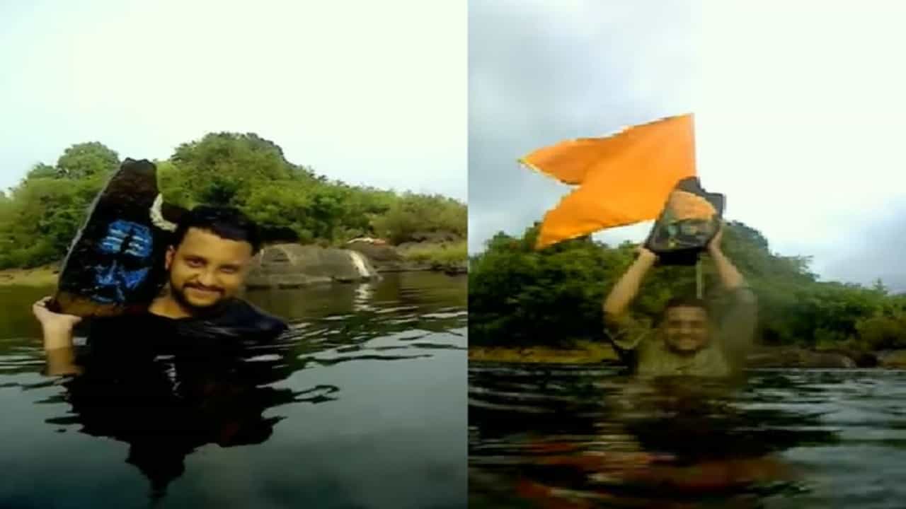 VIDEO | तीन फूट खोल नदीपात्रात शिवरायांचे चित्र रेखाटण्याची जिद्द, पाण्याखाली जाऊन चित्र काढणारा ‘अवलिया’