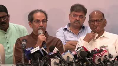 या निवडणुकीत जनतेने कौल दिला आहे. आता मोदी सरकार नाही, तर हे एनडीए सरकार आहे. हे सरकार किती दिवस चालेल हा संभ्रम आहे. ते आम्हाला अनैसर्गिक युती म्हणत होते. पण आता त्यांचंच कडबोळं झालंय. ही युती नैसर्गिक की अनैसर्गिक हा संभ्रम आहे असं म्हणत शिवसेना पक्षप्रमुख उद्धव ठाकरे यांनी नरेंद्र मोदी आणि एनडीए सरकारवर निशाण साधला. किती दिवस सरकार राहील हे सांगता येत नाही असे नमूद करत या सरकारचं भवितव्य कठीण असल्याचे त्यांनी अप्रत्यक्षरित्या सुनावलं. लोकसभा निवडणुकीच्या निकालानंतर मुंबईतील वाय.बी. चव्हाण सेंटरमध्ये महाविकास आघाडीची पत्रकार परिषद झाली. त्यावेळी उद्धव ठाकरे यांनी अनेक मुद्यांवर स्पष्ट प्रतिक्रिया दिली. या पत्रकार परिषदेत उद्धव ठाकरे यांच्यासह शरद पवार, पृथ्वीराज चव्हाण, संजय राऊत, जयंत पाटील, जितेंद्र आव्हाड यांच्यासह अनेक नेते उपस्थित होते.