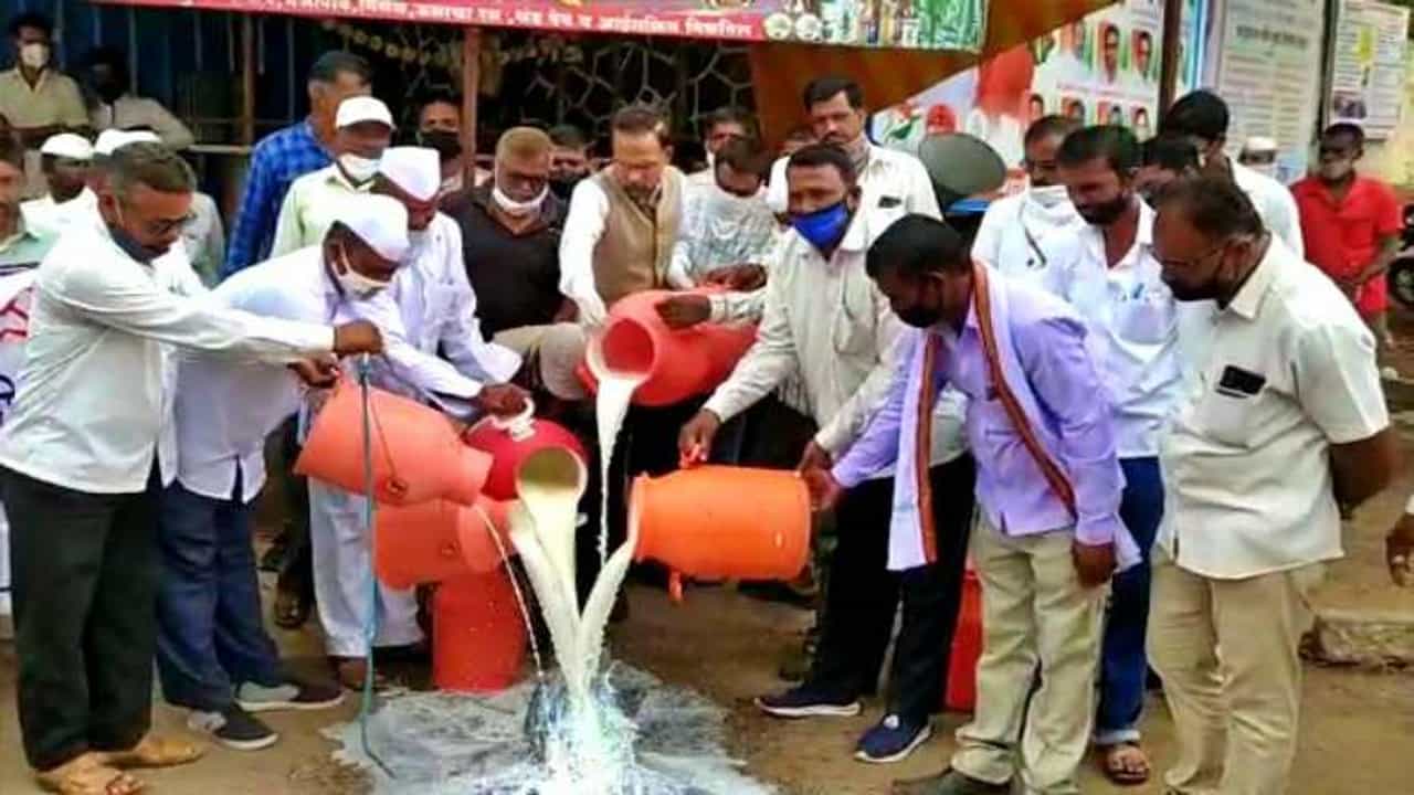 VIDEO : राज्यभरात ठिकठिकाणी शेतकऱ्यांकडून दुधाचा अभिषेक घालत शेतकऱ्यांच्या लुटीचा निषेध, महाराष्ट्रातील 21 जिल्ह्यांमध्ये आंदोलन#Milk #MilkProtest #FarmersProtest #Maharashtra pic.twitter.com/UuehxRiucV