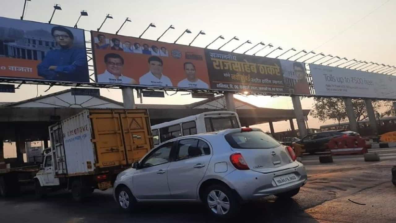 (MNS Volunteers welcome Raj Thackeray in Navi Mumbai Posters at Vashi Tollnaka)